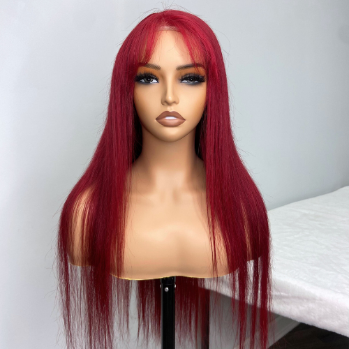 Burgundy Red 13x4 Full Frontal Straight Human Hair Wig 180% Density Pre-Plucked