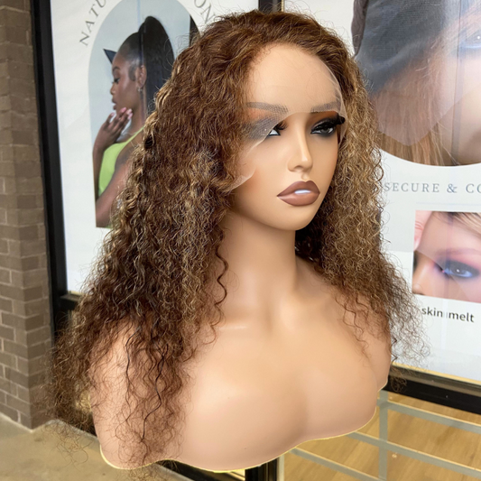 We Heart Hair Honey Blonde Highlight Malaysian Curly 13x4 Frontal Human Hair Wig