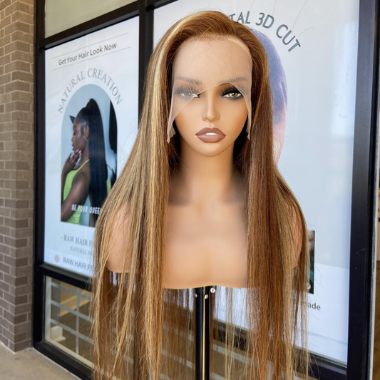 We Heart Hair Honey Blonde Highlights 13X4 Full Frontal Wig Ombre F4/7 Straight Human Hair Wig