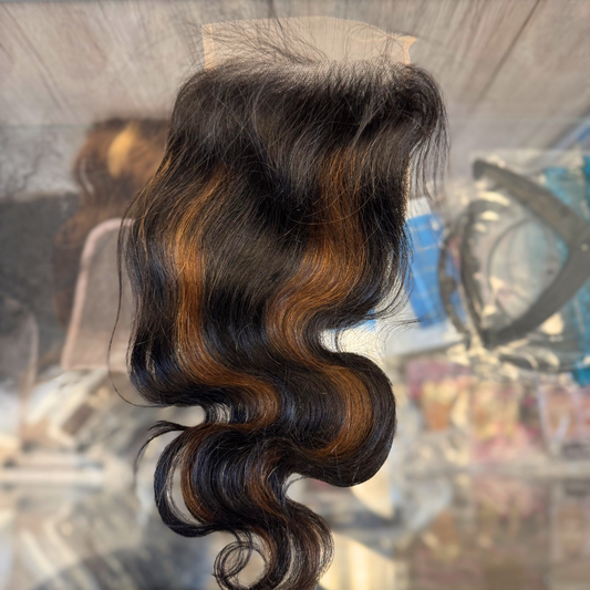 F1B/30 Highlight Brown 5x5 Ultra Thin Lace Closure Straight Body Wave